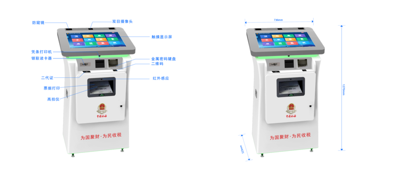 机柜正面预留2个前置USB 整机符合人体工程学设计,布局合理,工艺精细; 全钢机柜,布线规范、合理; 柜体厚度≥1.5mm,防水、防尘、防锈、防腐、耐磨。内部供电,内部结构布线,立式结构,新颖美观 材料:坚硬厚实,不易变形,具备防窥镜 表层处理:防暴、防撬、防盗、防锈、防腐、耐磨,不易沾污损坏 内部结构:模块化定位,布线规范整齐