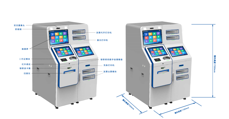 机柜正面预留2个前置USB 整机符合人体工程学设计,布局合理,工艺精细; 全钢机柜,布线规范、合理; 柜体厚度≥1.5mm,防水、防尘、防锈、防腐、耐磨。内部供电,内部结构布线,立式结构,新颖美观 材料:坚硬厚实,不易变形,具备防窥镜 表层处理:防暴、防撬、防盗、防锈、防腐、耐磨,不易沾污损坏 内部结构:模块化定位,布线规范整齐