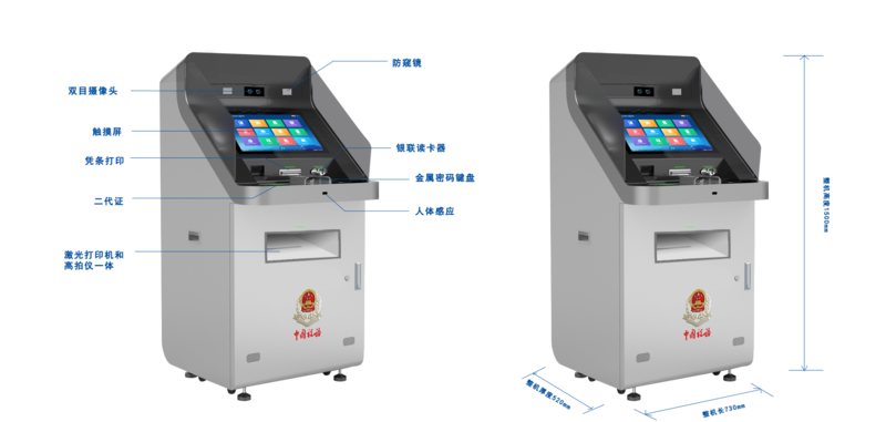 机柜正面预留2个前置USB 整机符合人体工程学设计,布局合理,工艺精细; 全钢机柜,布线规范、合理; 柜体厚度≥1.5mm,防水、防尘、防锈、防腐、耐磨。内部供电,内部结构布线,立式结构,新颖美观 材料:坚硬厚实,不易变形,具备防窥镜 表层处理:防暴、防撬、防盗、防锈、防腐、耐磨,不易沾污损坏 内部结构:模块化定位,布线规范整齐